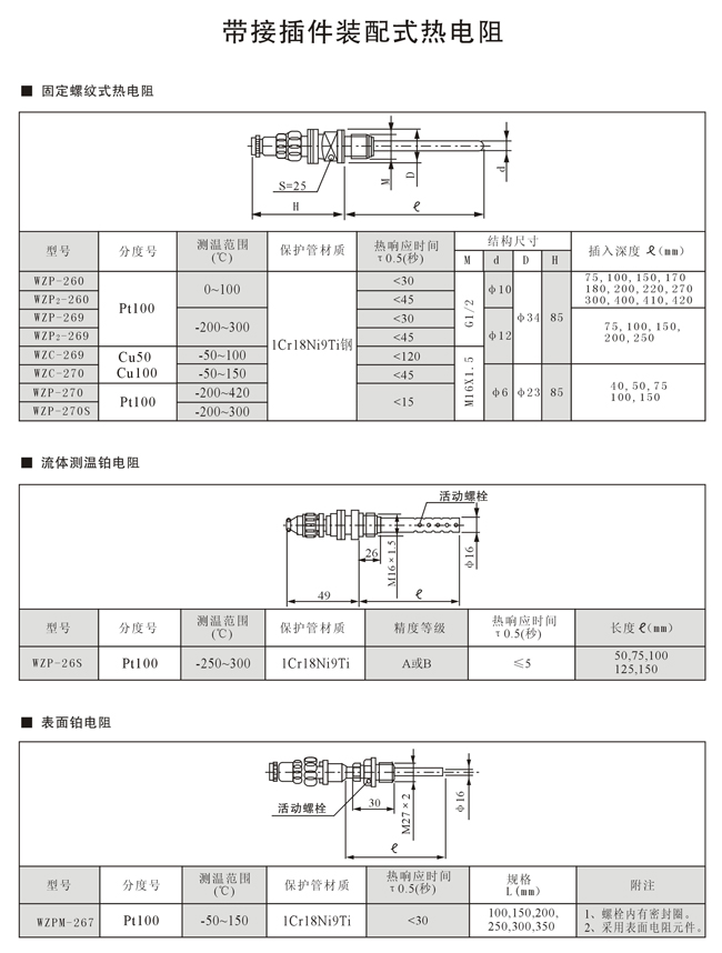 非普通装配式热电偶、热电阻