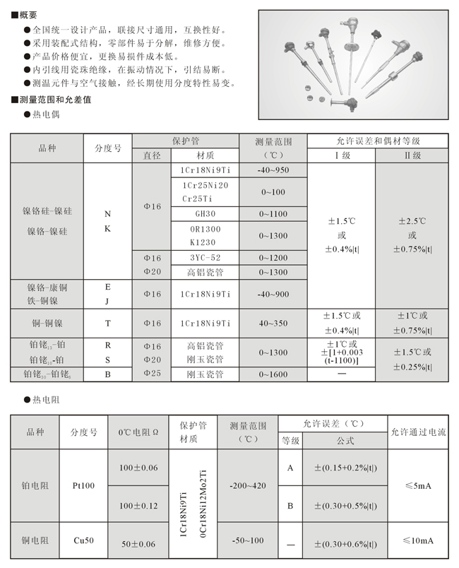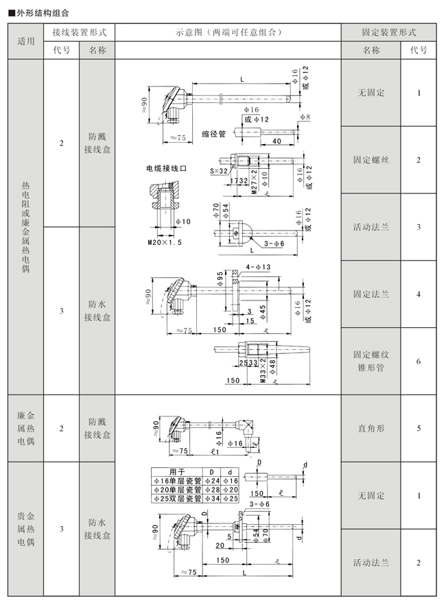 普通装配式热电偶、热电阻