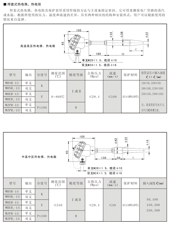 焊套式热电偶、热电阻
