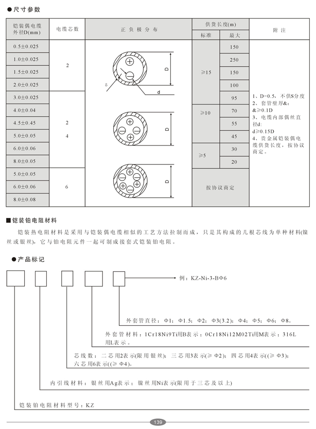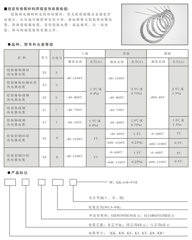 铠装热电偶和铠装热电阻材料
